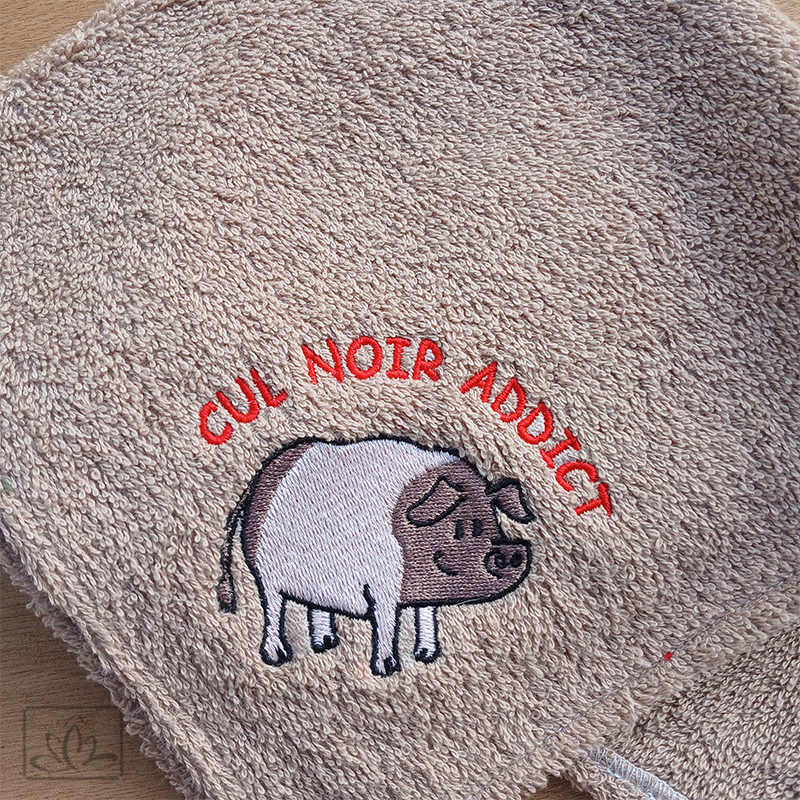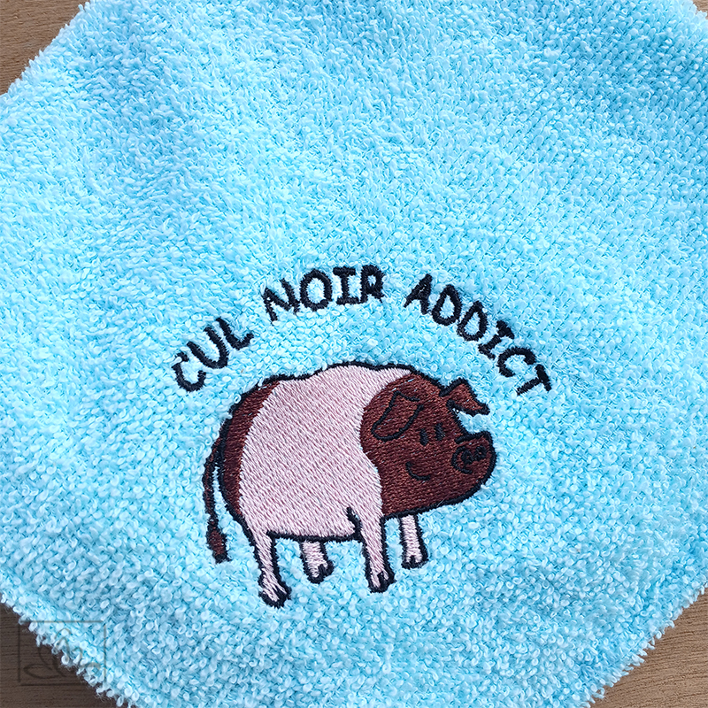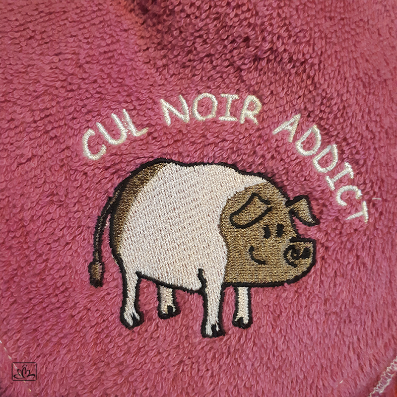 – Un cochon cul-noir avec l’inscription « Cul-noir addict ».