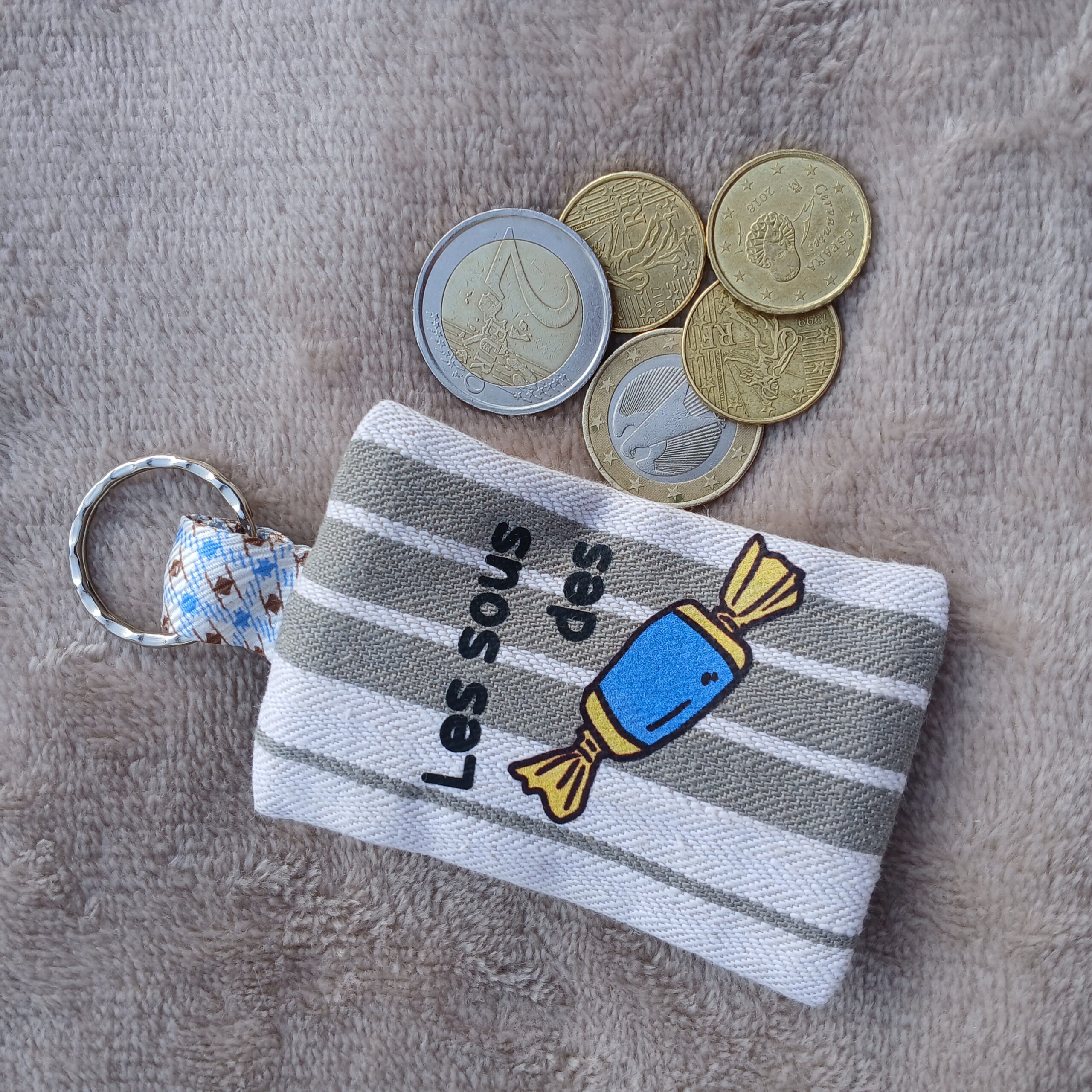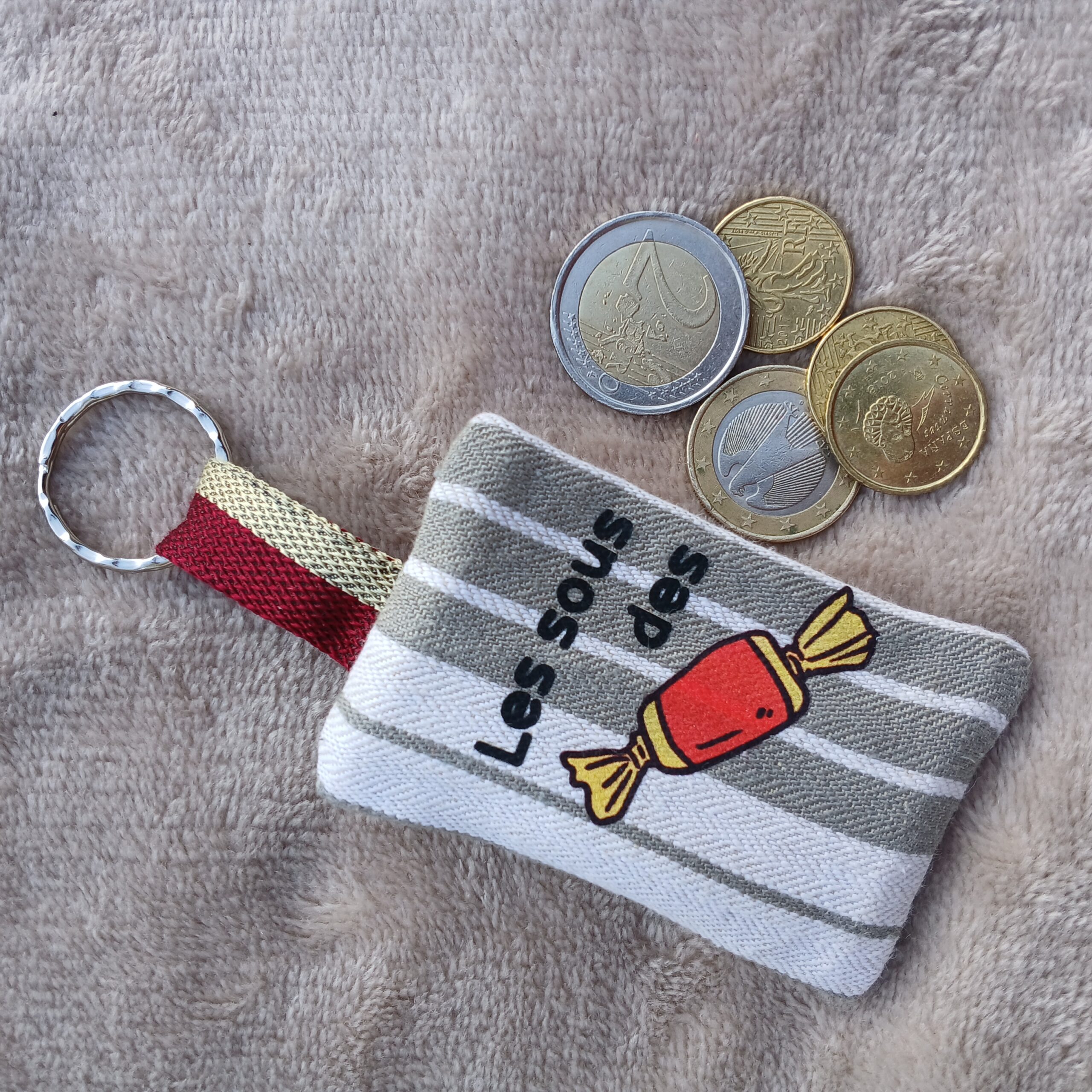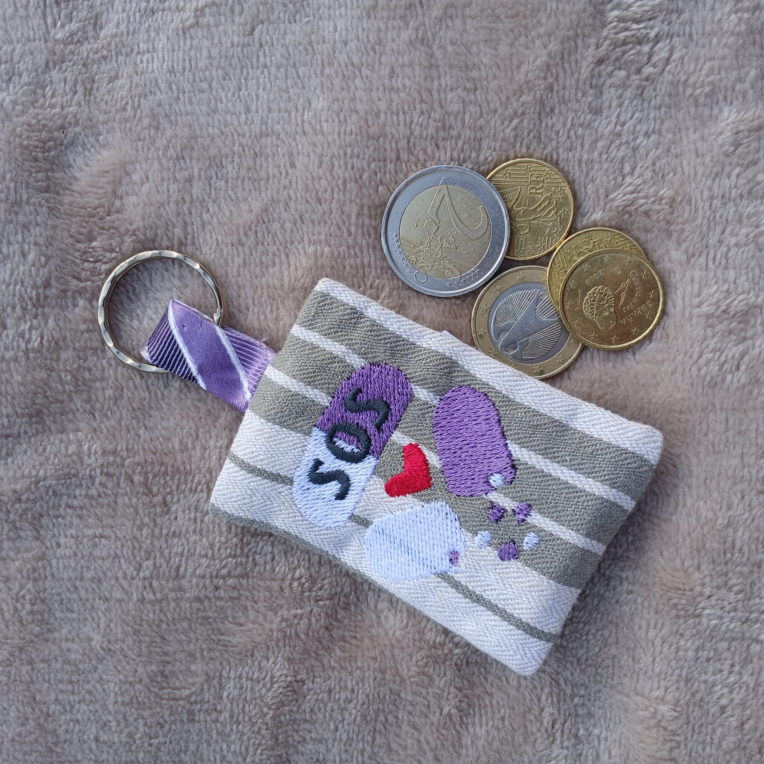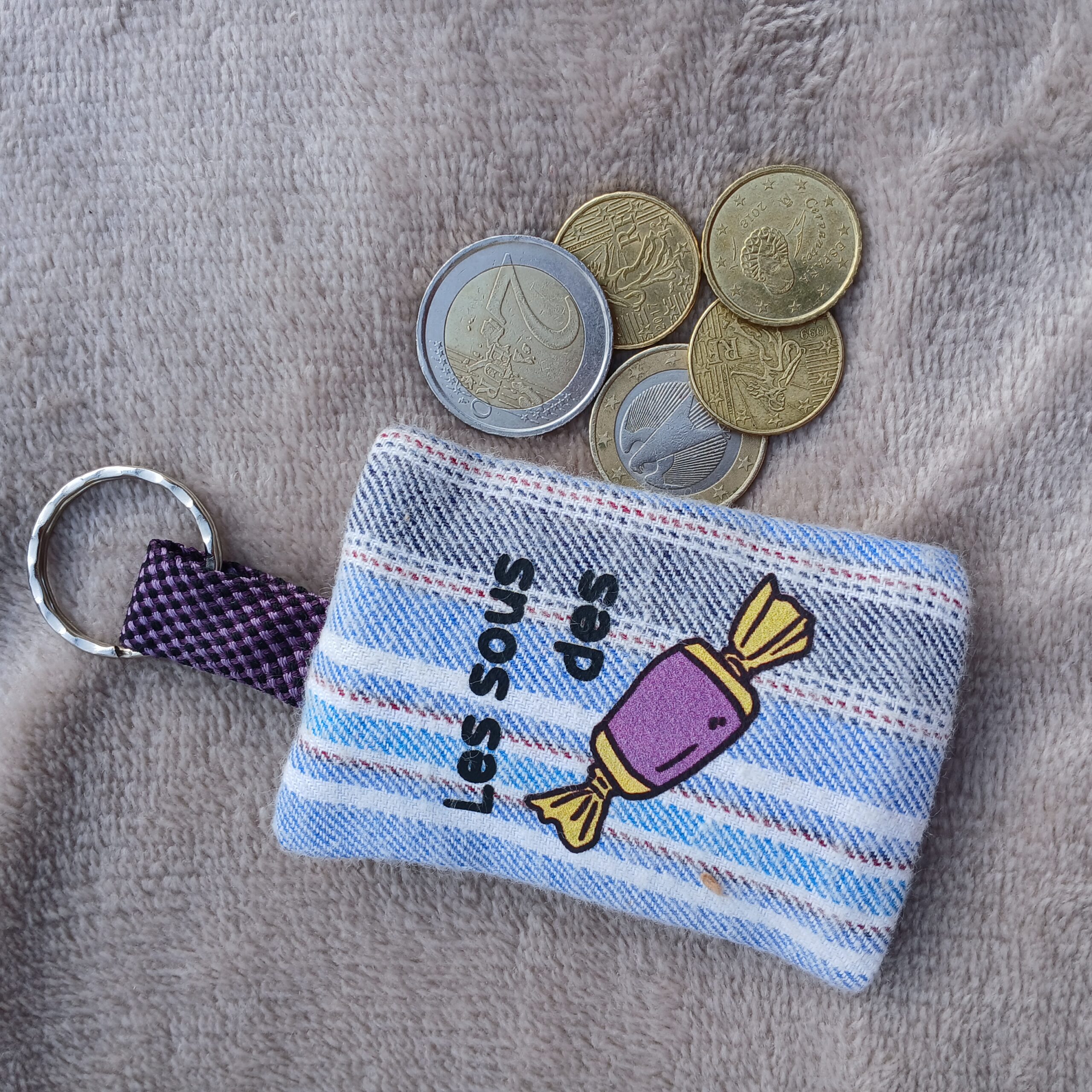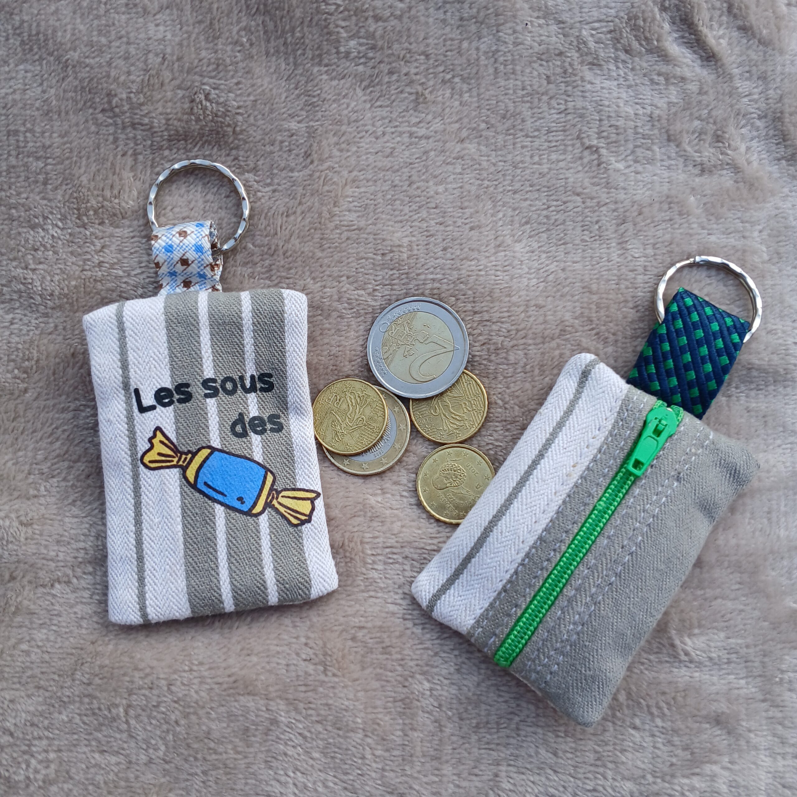 Porte-clefs-monnaie à glisser dans votre sac à main, dans votre sac de cours, votre sacoche de bureau, votre poche et pouvant contenir votre monnaie  ou quelques médicaments, un bonbon de secours.